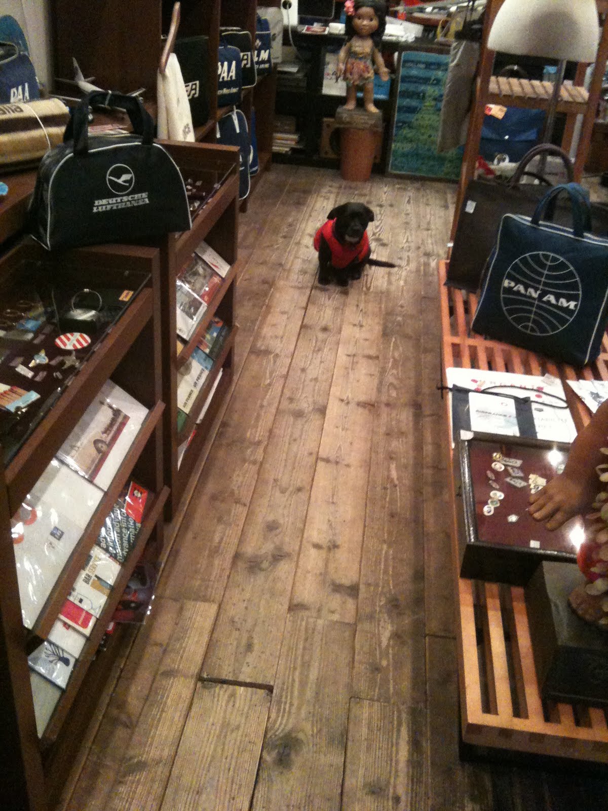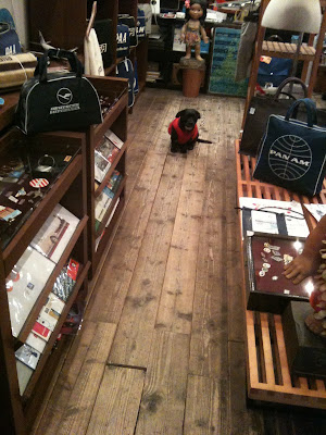 If you walk along the river towards the train tracks and pass under them you will come to this Izakaya, which I wanted to try but didn't get a chance because nature had other plans for me. Anywho, if you make a left on this street and walk until you reach another underpass you will see a large ugly red brick building in front of you, this houses a few vintage stores and a cute Zakka store. Here you'll find, Attic Antiques, SIIGE, USA Sundance, Loop, and a few other places,one of the vintage stores had only wares associated with airlines and travel, plus they had a super cute dog working there.